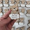 Creado en madera y  pintados a mano, personalizado con el  nombre de tu bebe y la fecha del evento.